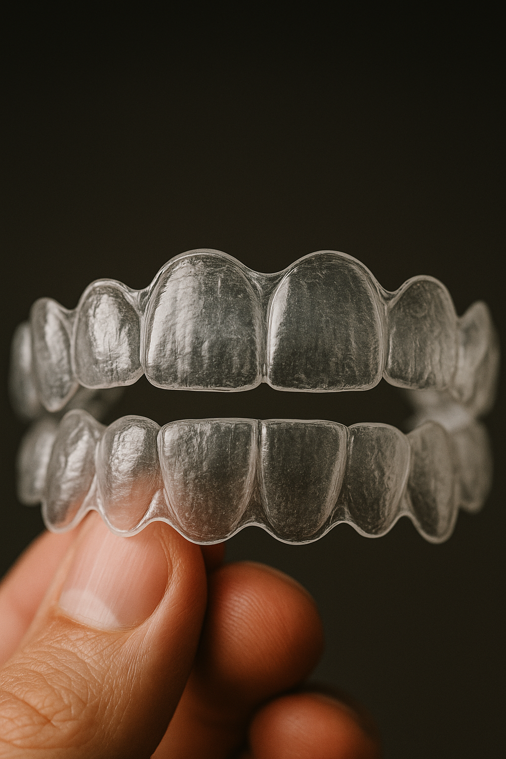 Alignez vos dents discrètement grâce à des gouttières transparentes sur mesure, confortables et esthétiques.
