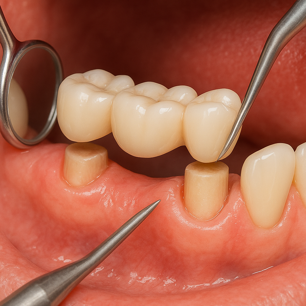 La prothèse fixée permet de restaurer la fonction et l’esthétique d’une dent abîmée ou manquante de manière durable.